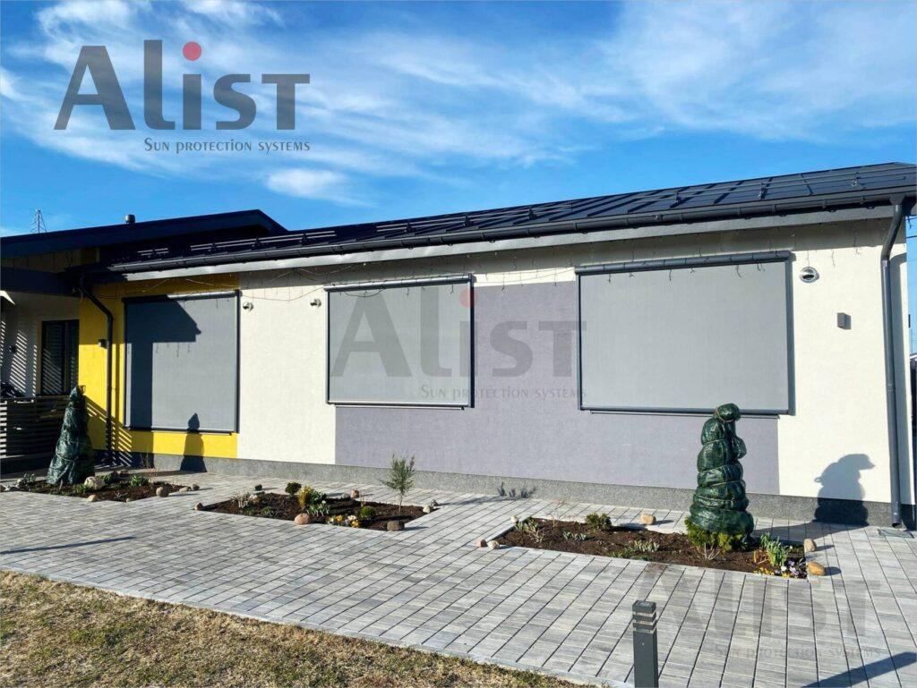 Основными преимуществами является то, что ткань защищена коробом, а между тканью и направляющими обеспечена герметичность за счет эксклюзивного решения – молнии “Zpus” компании Serge Ferrari.