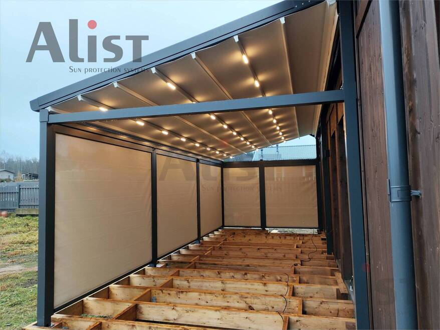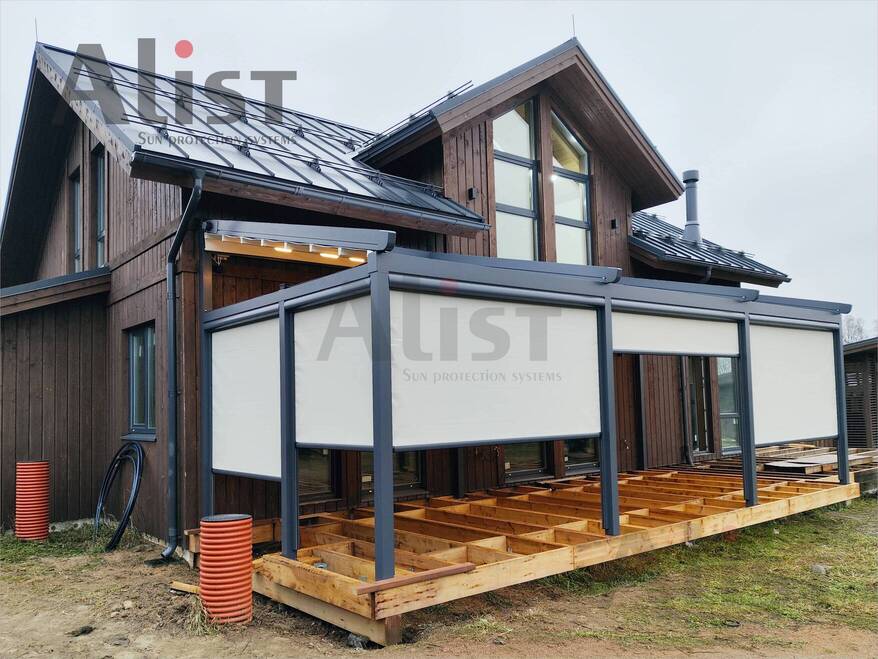 Вертикальные кассетные маркизы нашли широкое применение для обустройства беседок, веранд и пергол.